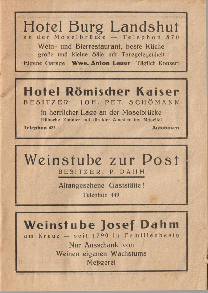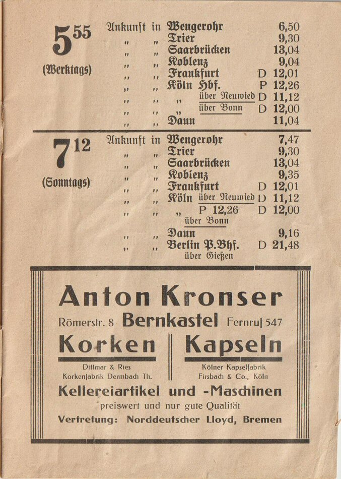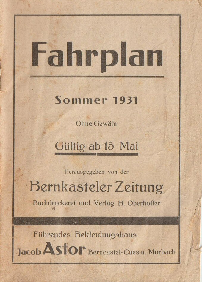 Hier eine Speisekarte zur Eröffnung und ein paar Fahrpläne der Zeit und auch Preise. Vermutlich alles Mitteilungen der Zeitung "MOSELLA".