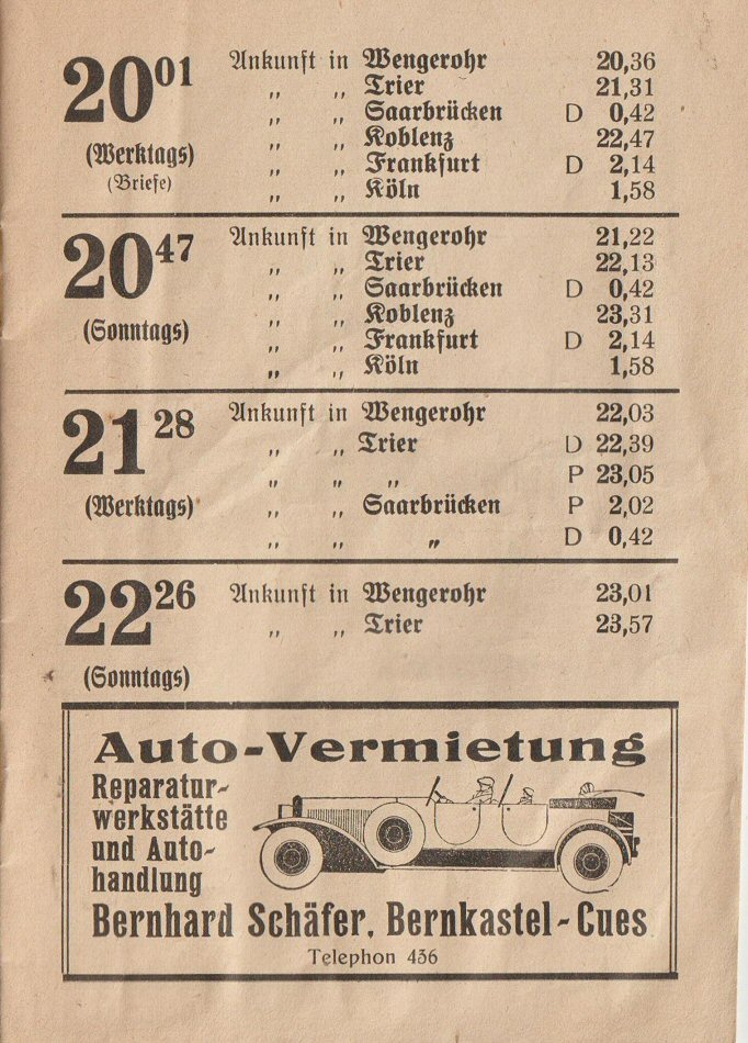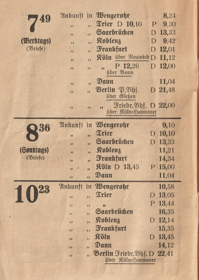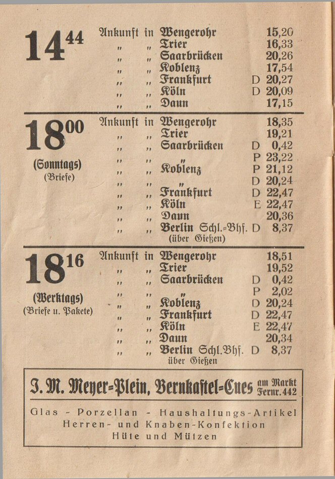Hier ein Werbe-Fahplanheftchen von 1931, das mir Herr Reichelt zur Verfügung gestellt hat. Es gibt deutschlandweit Ankunftszeiten an.