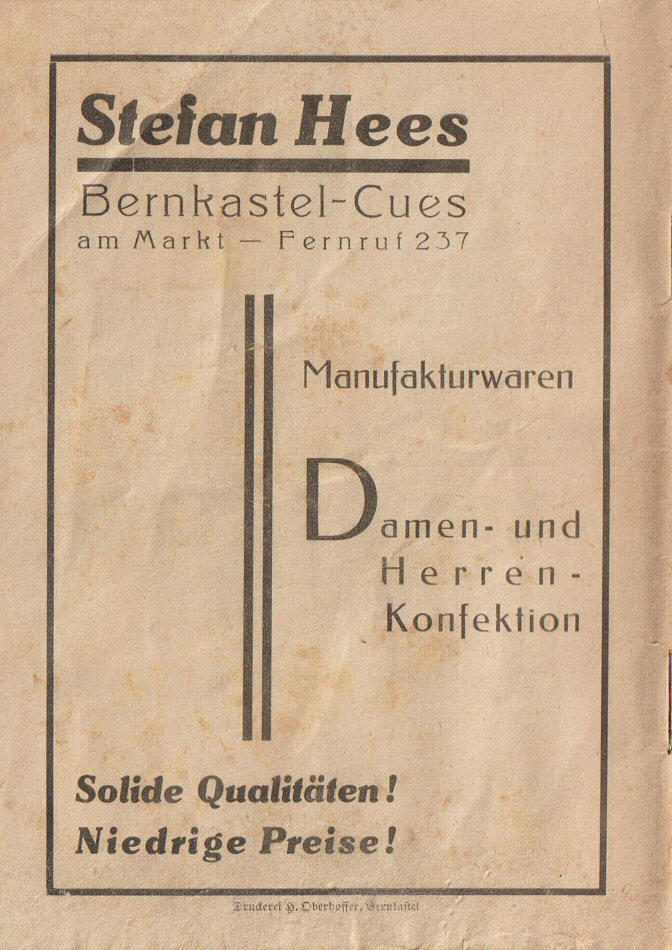 Und ein Zeitungsartikel dazu - möglicherweise Bernkasteler Zeitung.