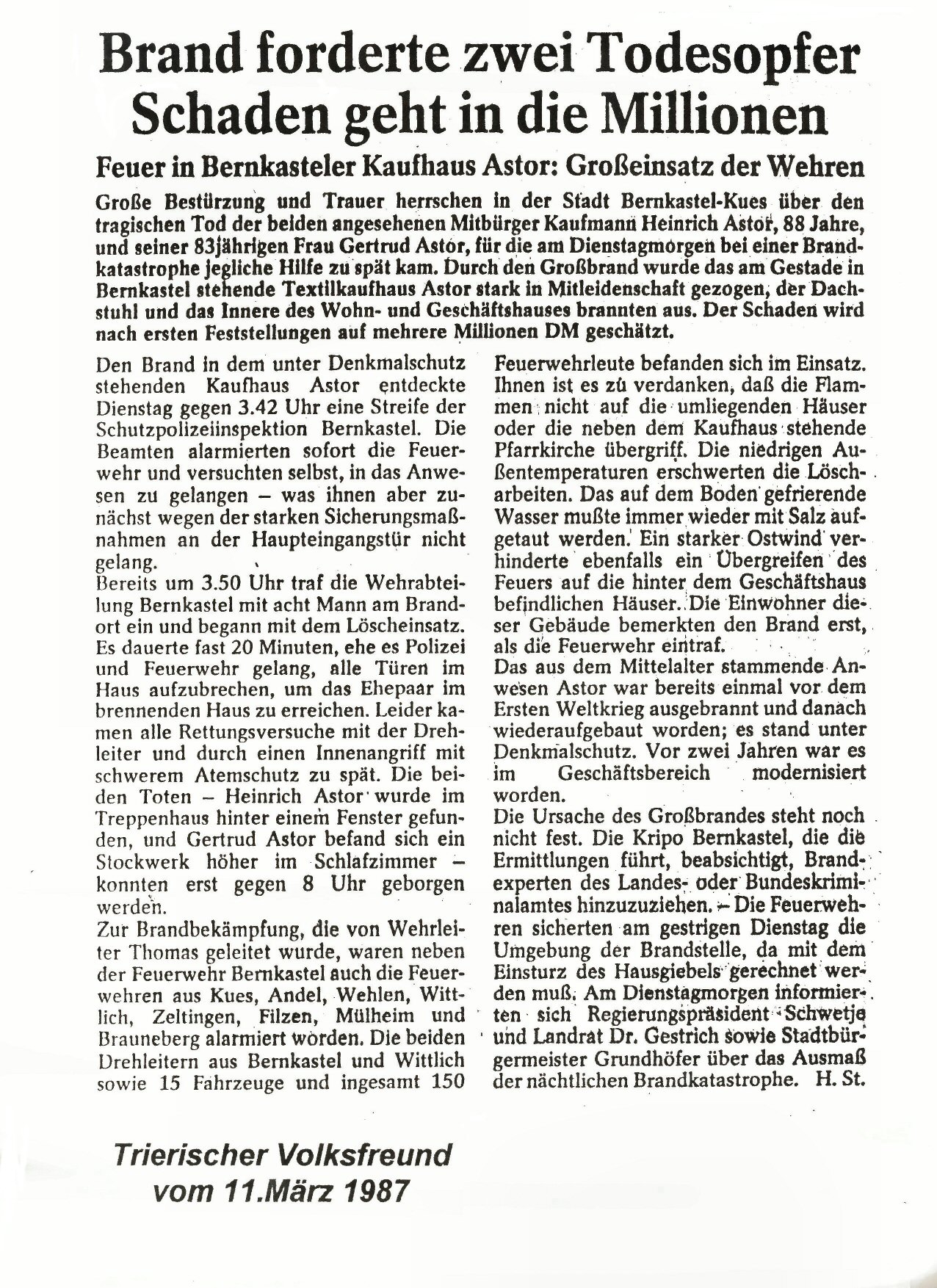 Trierischer Volksfreund Artikel 1987.