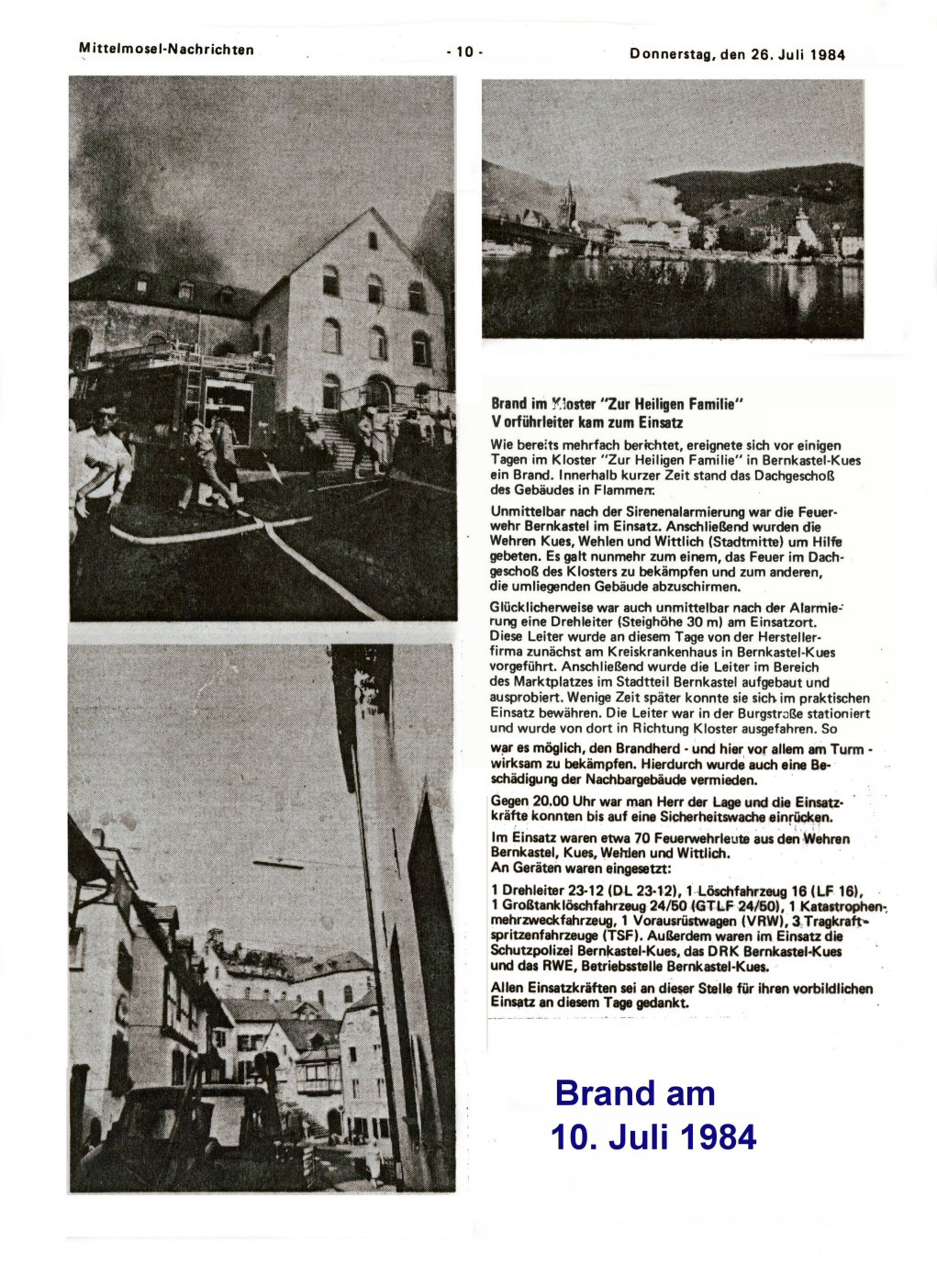 Bilder diverser Brände, die Bernkastel heimgesucht haben.