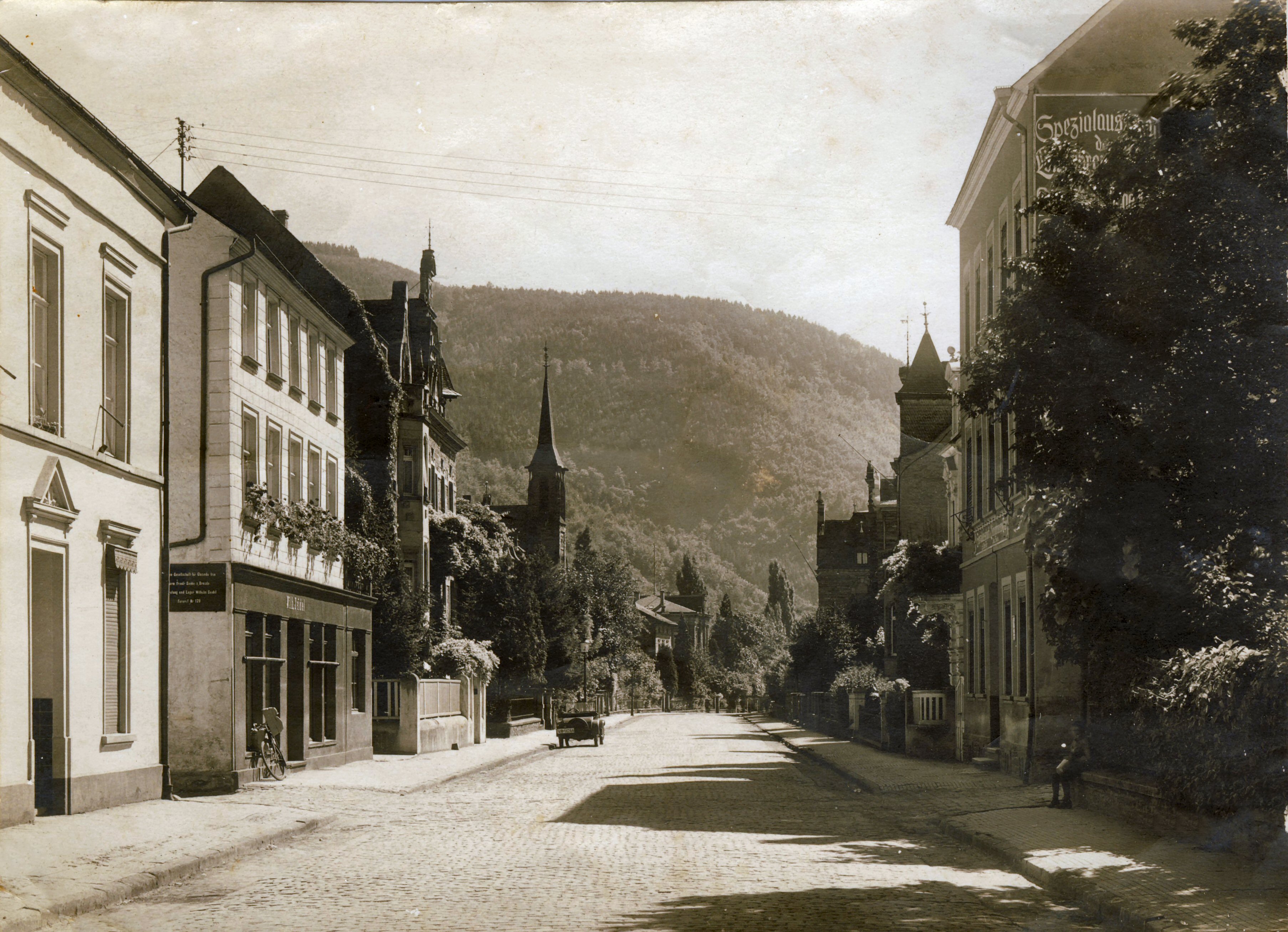 Diese Aufnahme hat Eduard Junk wohl aus einem Fenster seiner Villa gemacht, die auf der anderen Seite der Einmündung steht.