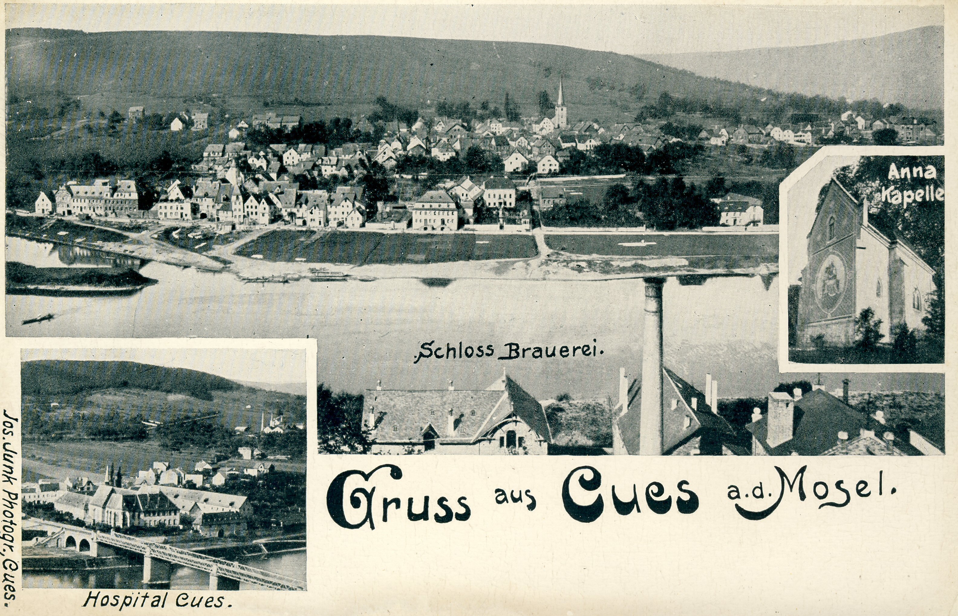 einer der damals seht bekannten "Kunstanstalten" für Ansichtskarten sondern der Photograph Josef Junk aus Cues hat sie selbst angefertigt. Die Karte ist nicht postalisch genutzt.