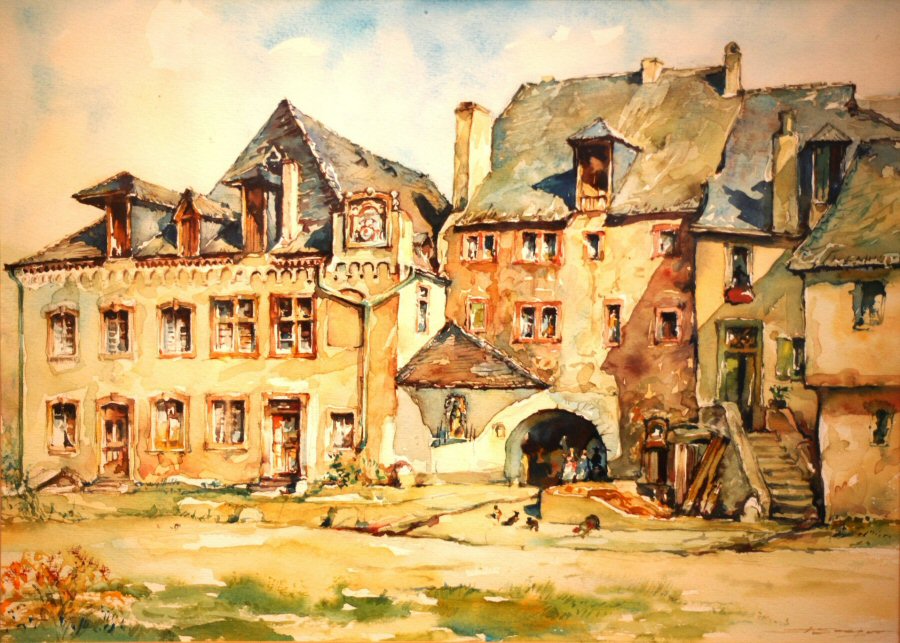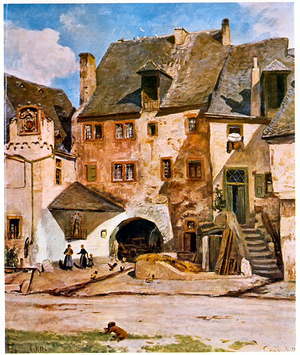 Cusanus Geburtshaus Kues um 1920 eventuell - Maler: Peter-Paul Müller-Werlau (1866-1949).