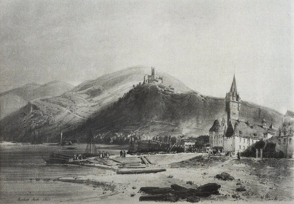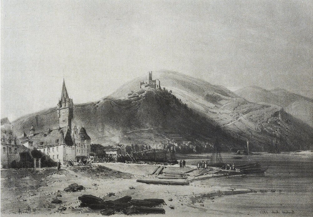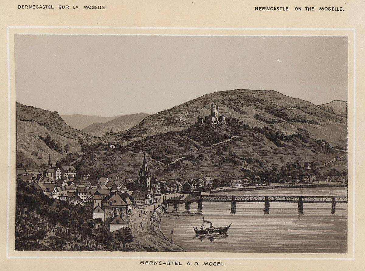 Eine Variante des Clerget Holzstiches: bezeichnet Berncastel Moselle 1860 (wirklich 1860?). Das Bild ist seitenverkehrt.