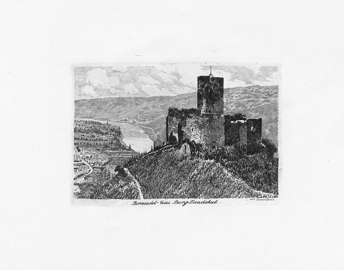 Fritz Quant, Trierer Maler und Grafiker (1888 Trier - 1933 Trier). Die Burg Landshut stammt aus einer Mappe "Moselburgen" mit 6 Burgenblättern.