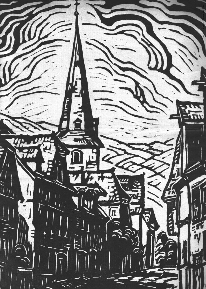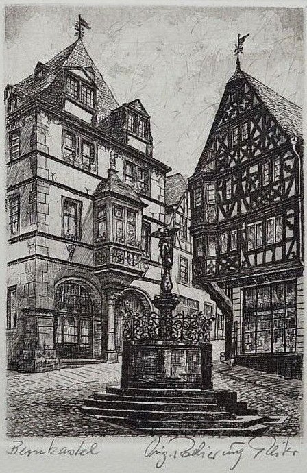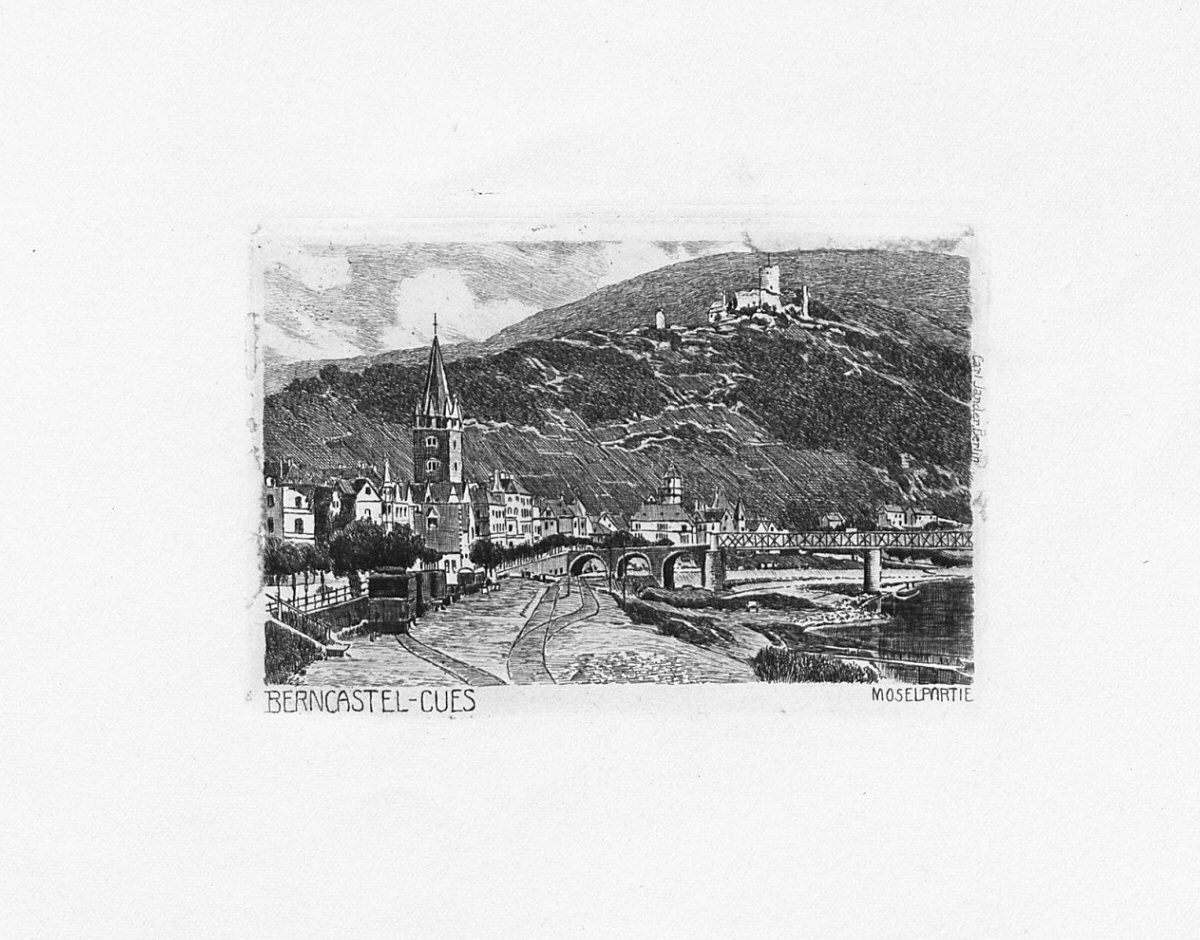 Zinkographie Landshut (Berncastel) von Fritz Quant, Trierer Maler und Grafiker (1888 Trier - 1933 Trier)