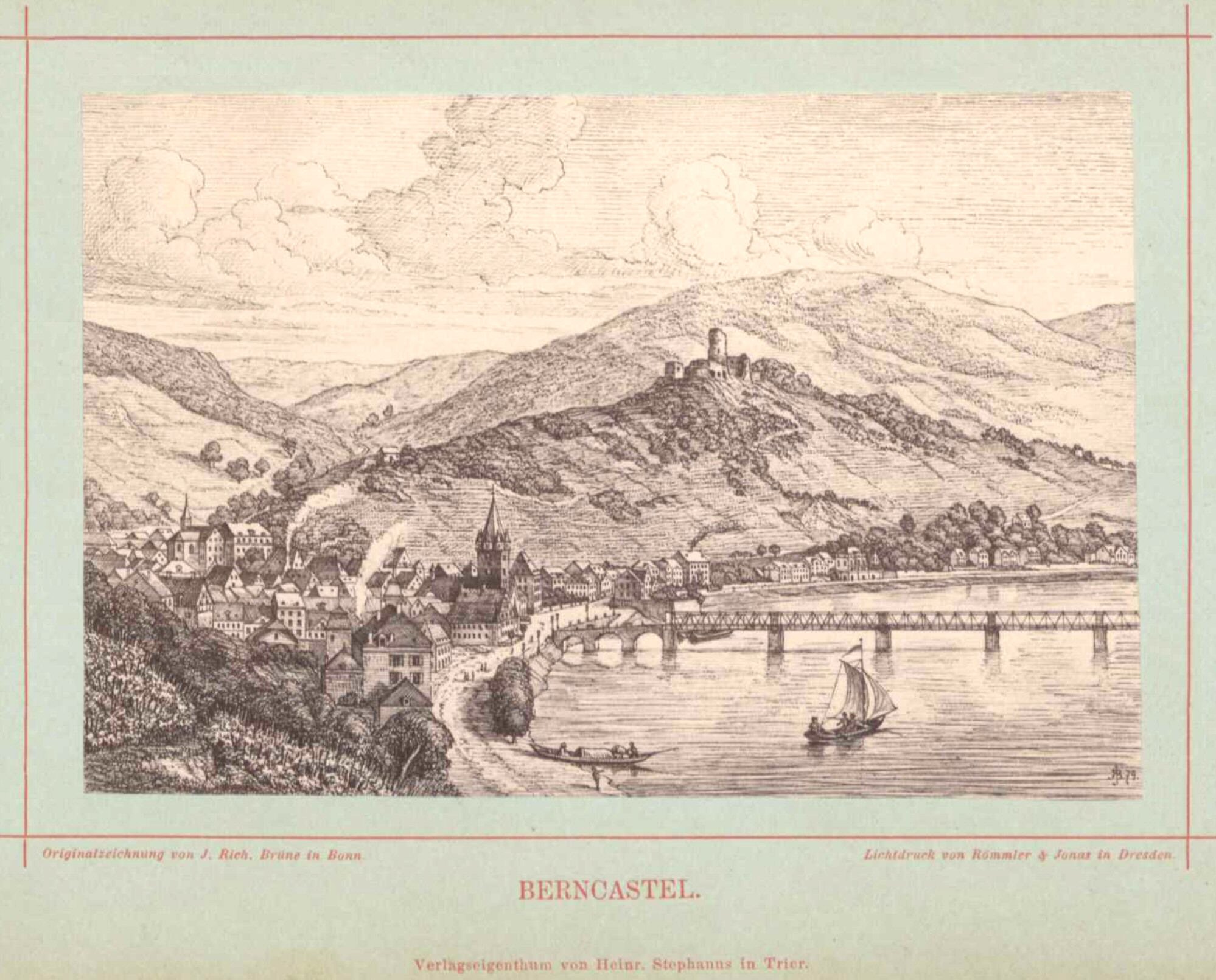 Bernkastel - Lichtdruck nach einer Originalzeichnung von J. Richard Brüne, Bonn.