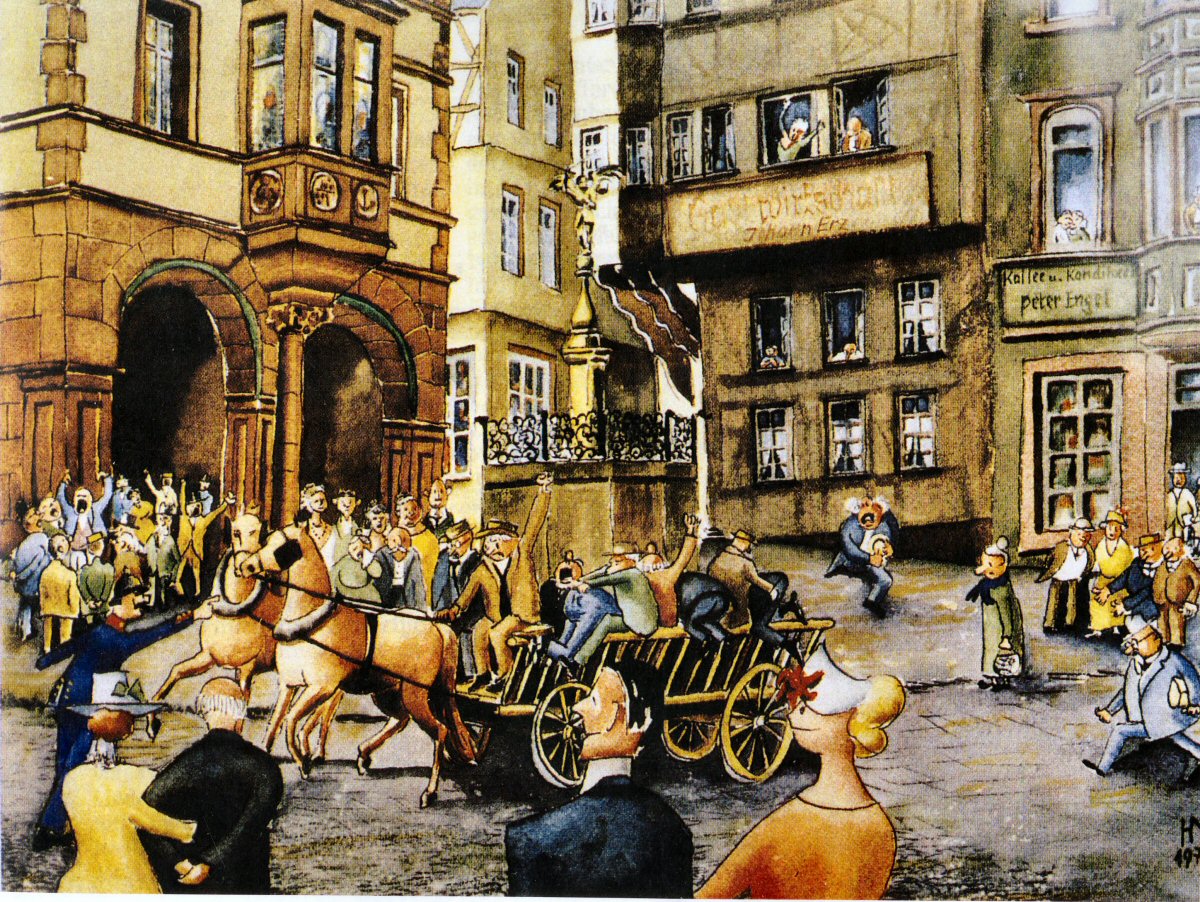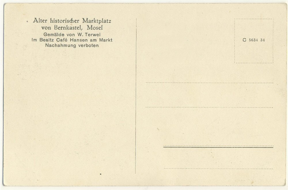 In 1934 gab es das Terwei Bild vom Markt auch als Ansichtskarte mit "Gemälde im Besitz von Café Hansen am Markt"