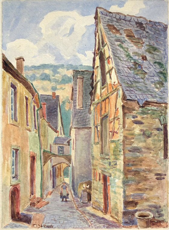 Aquarell Bernkastel von Franz Jakob Selbach (1875 - 1959), Kunstmaler, Bernkastel