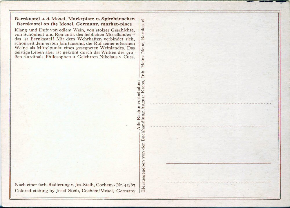 Hermann Bresgen, in dem Buch: "Das schöne lustige Berncastel", Louis Heuser's Verlag, Neuwied, 1891-98.