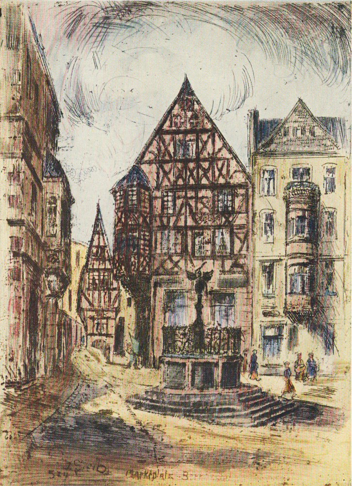 "Marktplatz" von Wilhelm Terwei (1875-1946), Morbacher Maler und Grafiker. Eventuell um 1920. Privatbesitz.