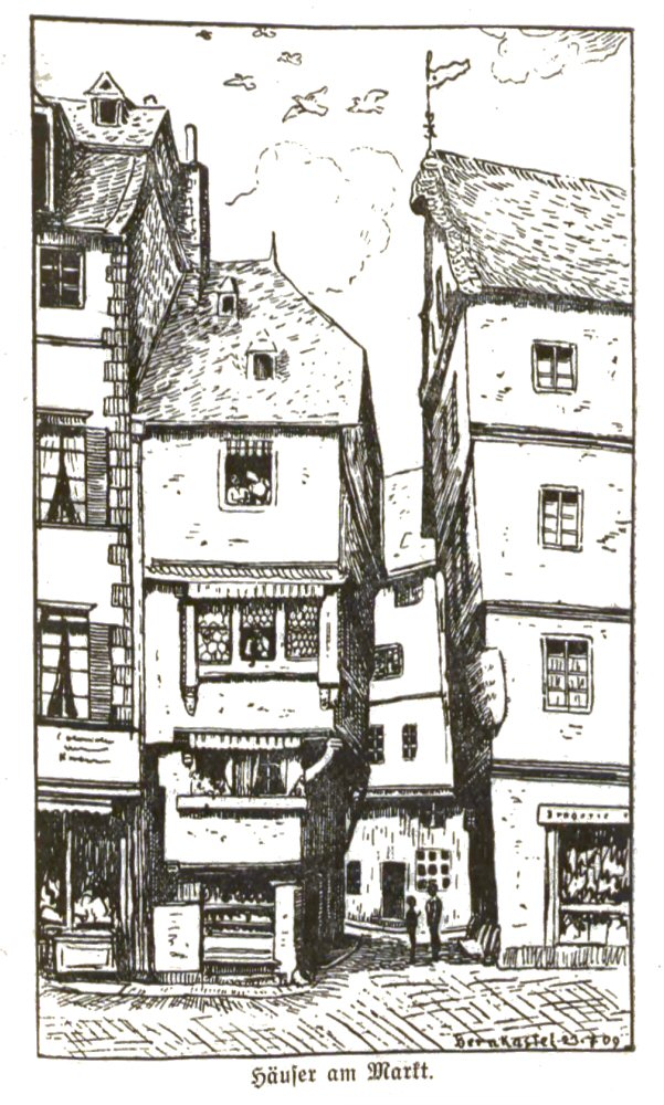 Fritz von Wille: Cusanushaus vor 1921, dem Jahr, in dem der hier gezeichnete Pulverturm abbrannte.
