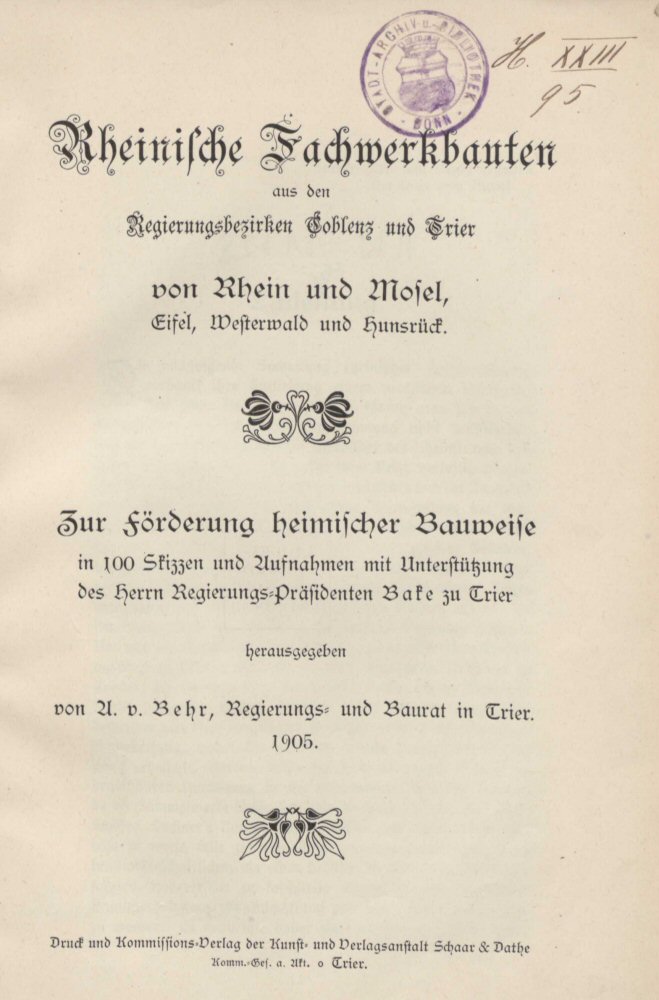 Aus dem Buch "Rheinische Fachwerkbauten", A. von Behr, Trier 1905.