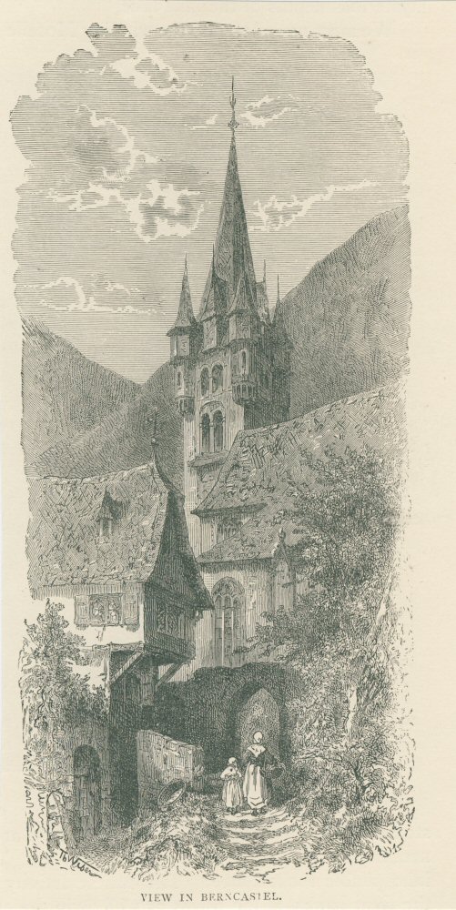 Bernkastel on the Moselle, Lithographie, koloriert. Aus der Lithographienfolge »Sketches at Home and Abroad«, London 1836