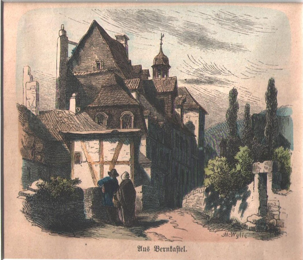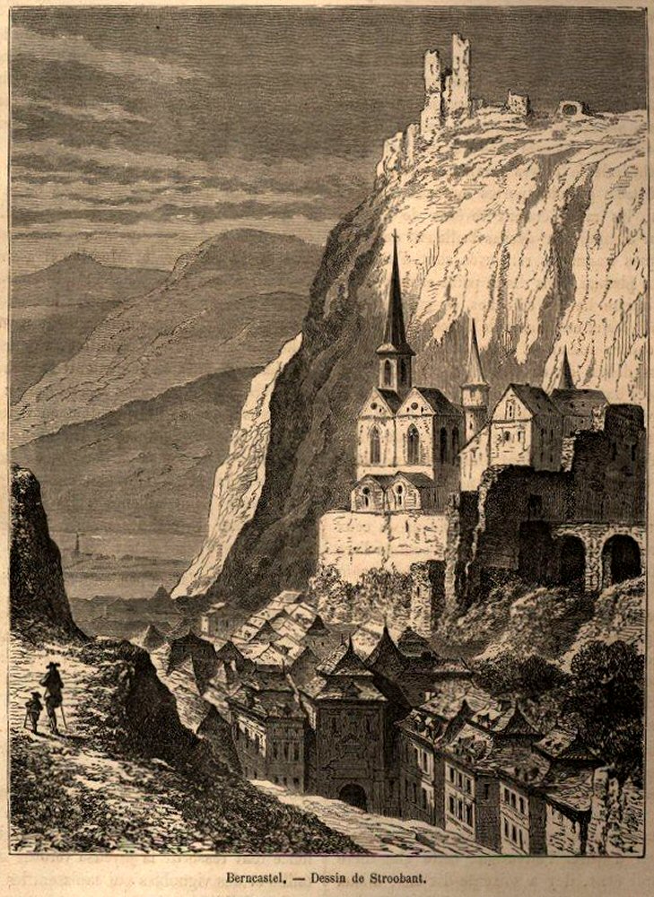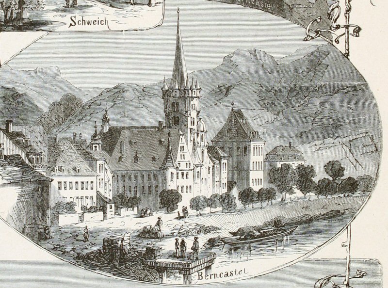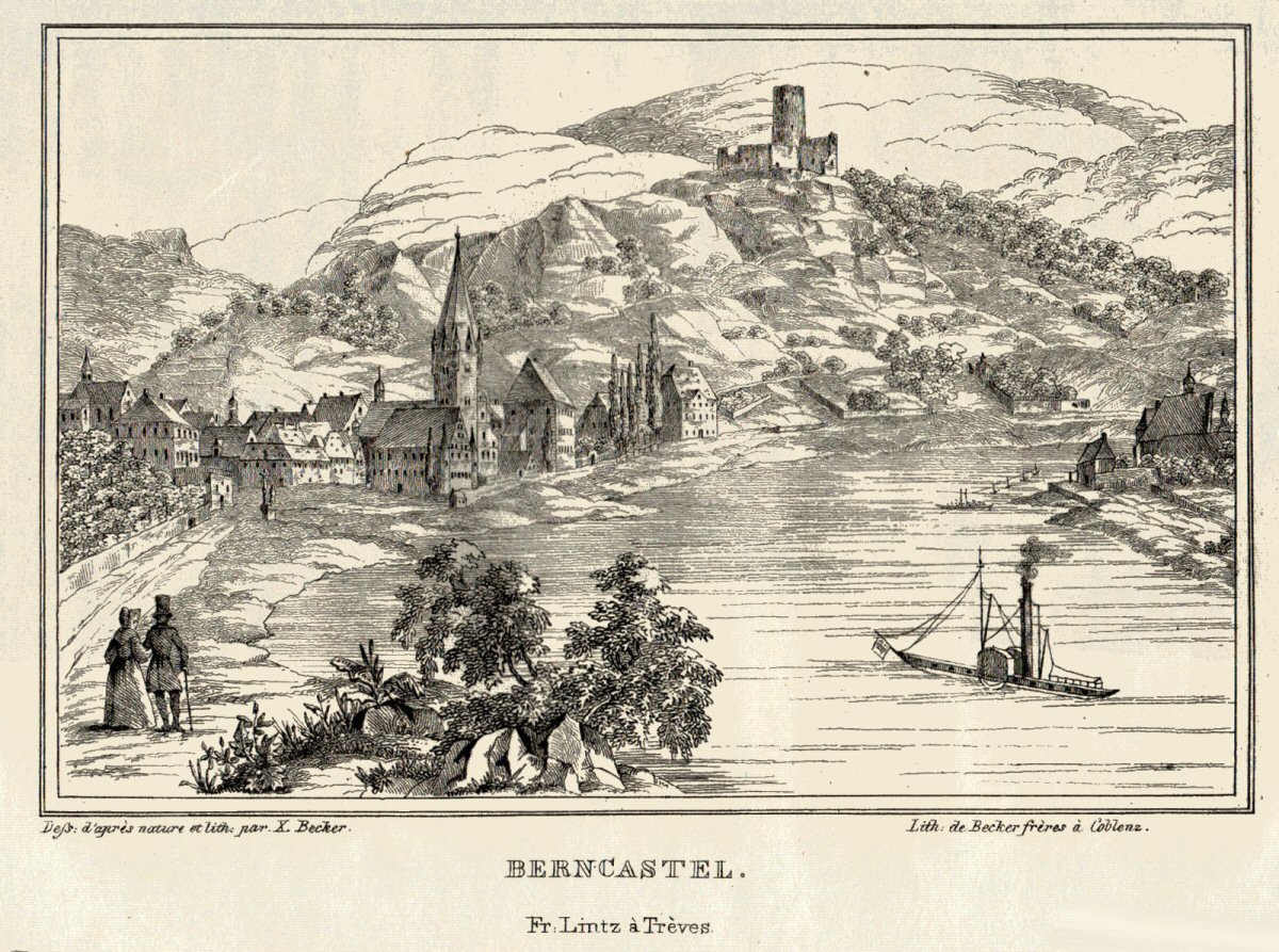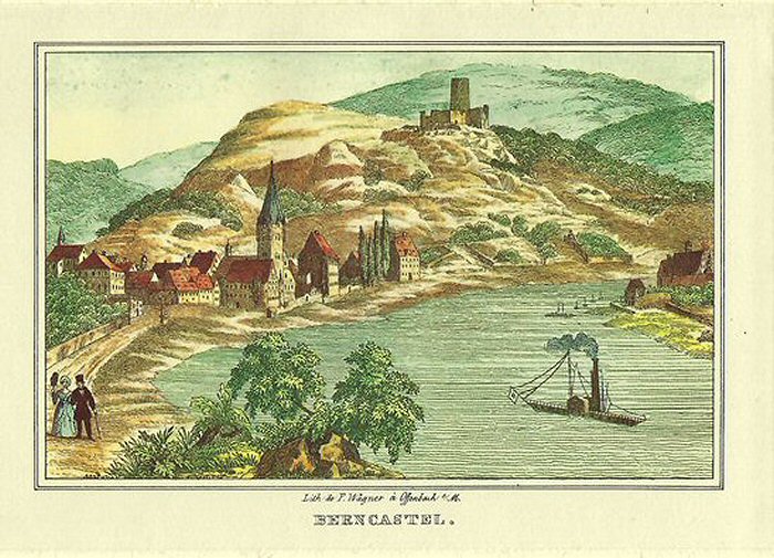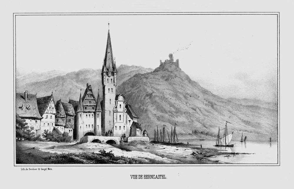 Wenn das mal keine Ähnlichkeit ist: Wendhut schreibt: "Berncastel - Gesamtansicht von E. Wagner, Lithographie aus "Les Bords du Rhin", Coblenz 1862.