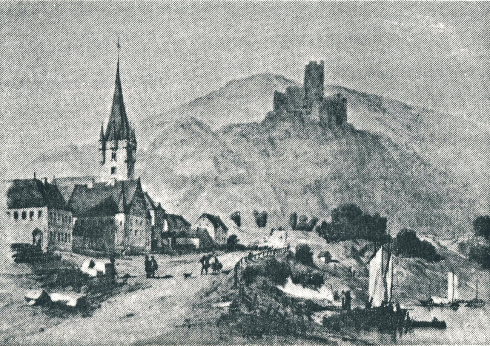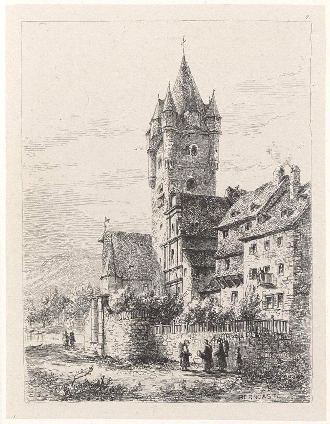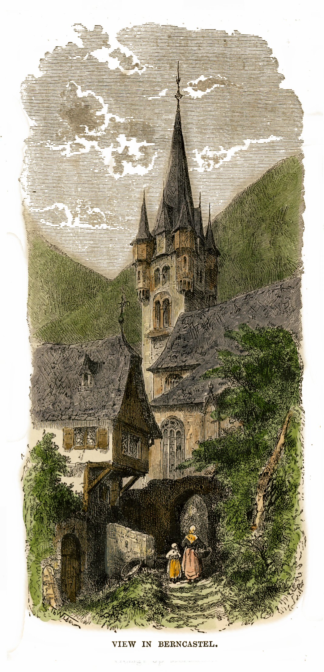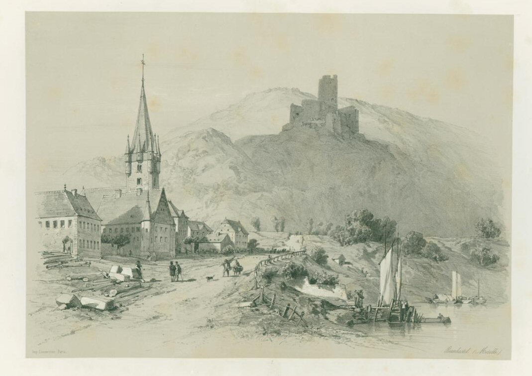 Wenn das mal keine Ähnlichkeit ist: Wendhut schreibt: "Berncastel - Gesamtansicht von E. Wagner, Lithographie aus "Les Bords du Rhin", Coblenz 1862.