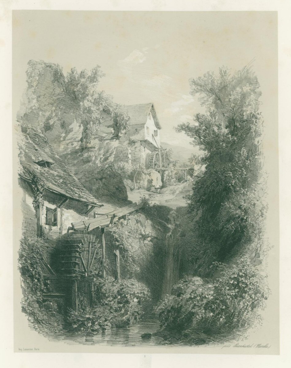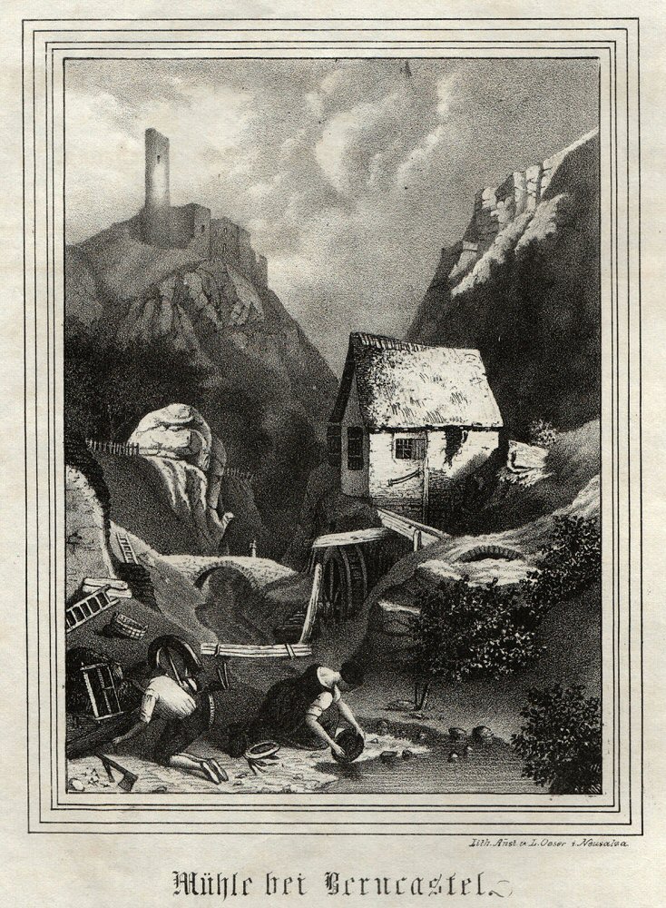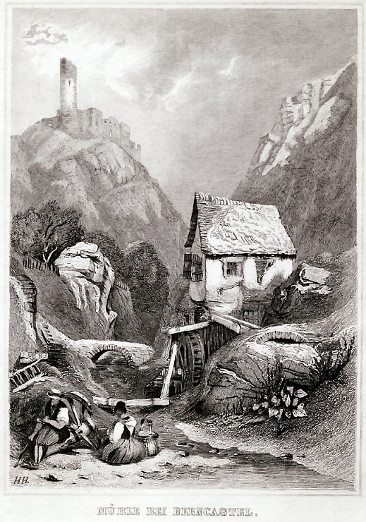 "Mühle bei Berncastel" - Stahtlstich aus "Das kleine Universum", Artistischer Verlag J. Scheible, Stuttgart 1841.