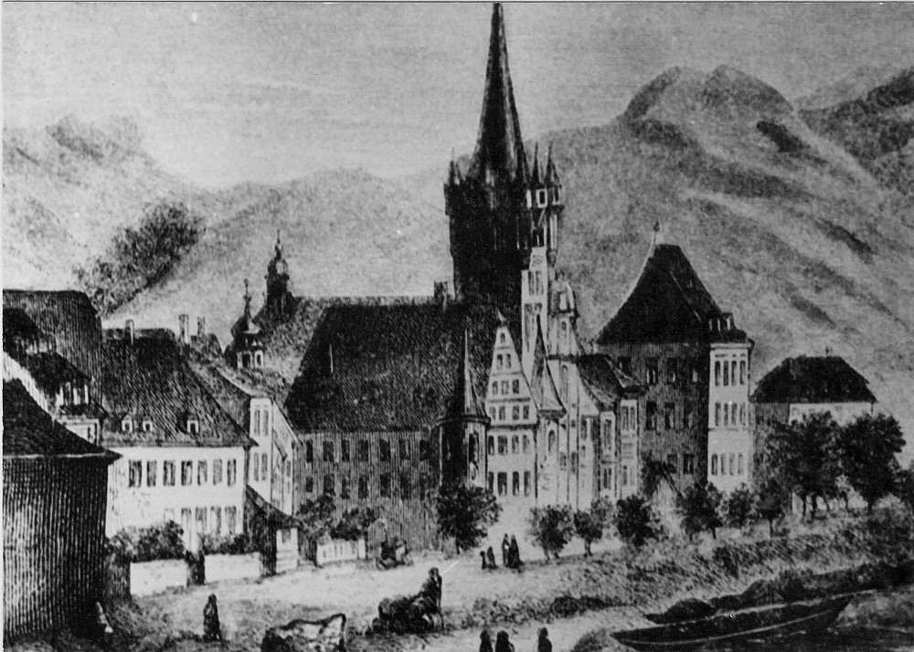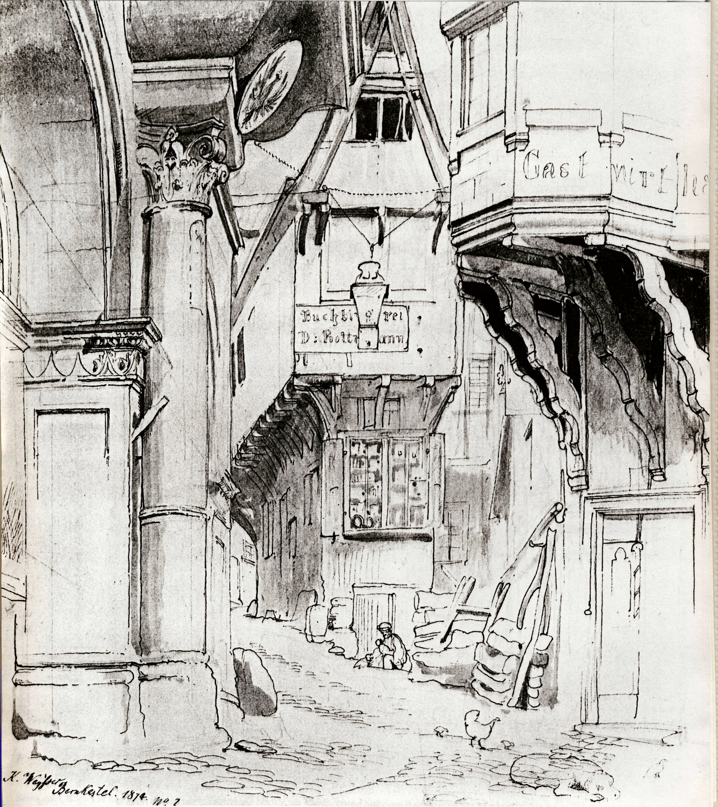 Heilig Geist Kirche, J.D. Harding um 1840 Das Bild oben ist spiegelverkehrt.