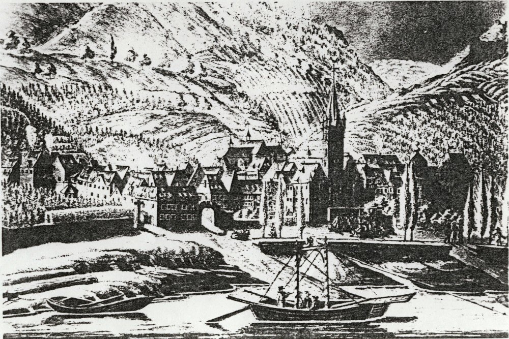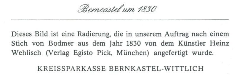 "Berncastel um 1830 - nach einem Stich von Bodmer - Original Handabzug" Quelle: Weltbild