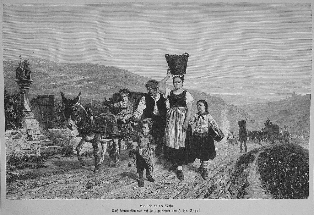 "Weinlese an der Mosel" - auch in Farbe - sorry, habe kein besseres Bild gefunden.