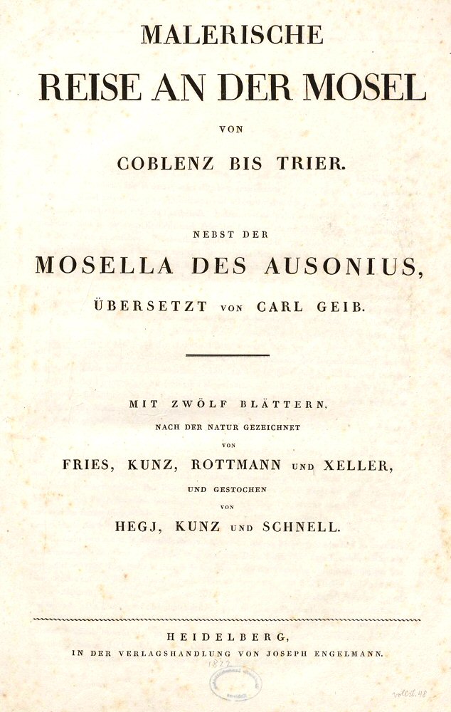 Er unternahm im Jahr 1824 eine Moselreise, die ihn auf seinem Weg von Trier nach