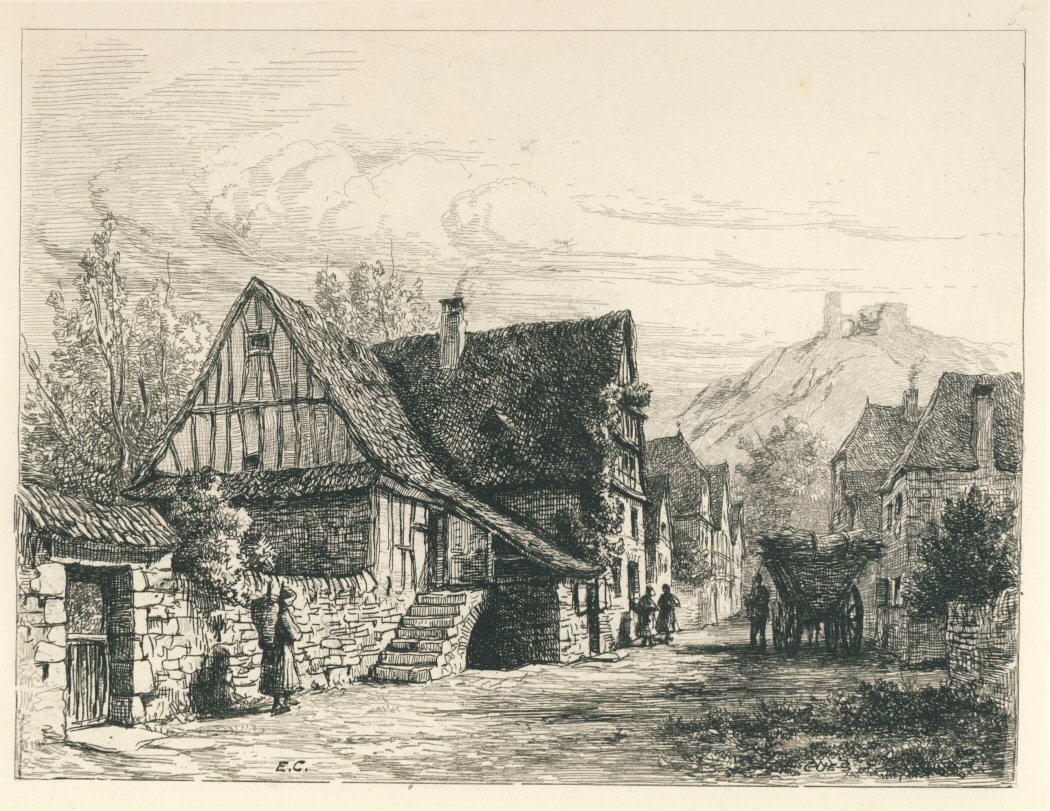 Bernkastel - Teilansicht von J.D. Harding um 1838 (Vorstadtpartie).