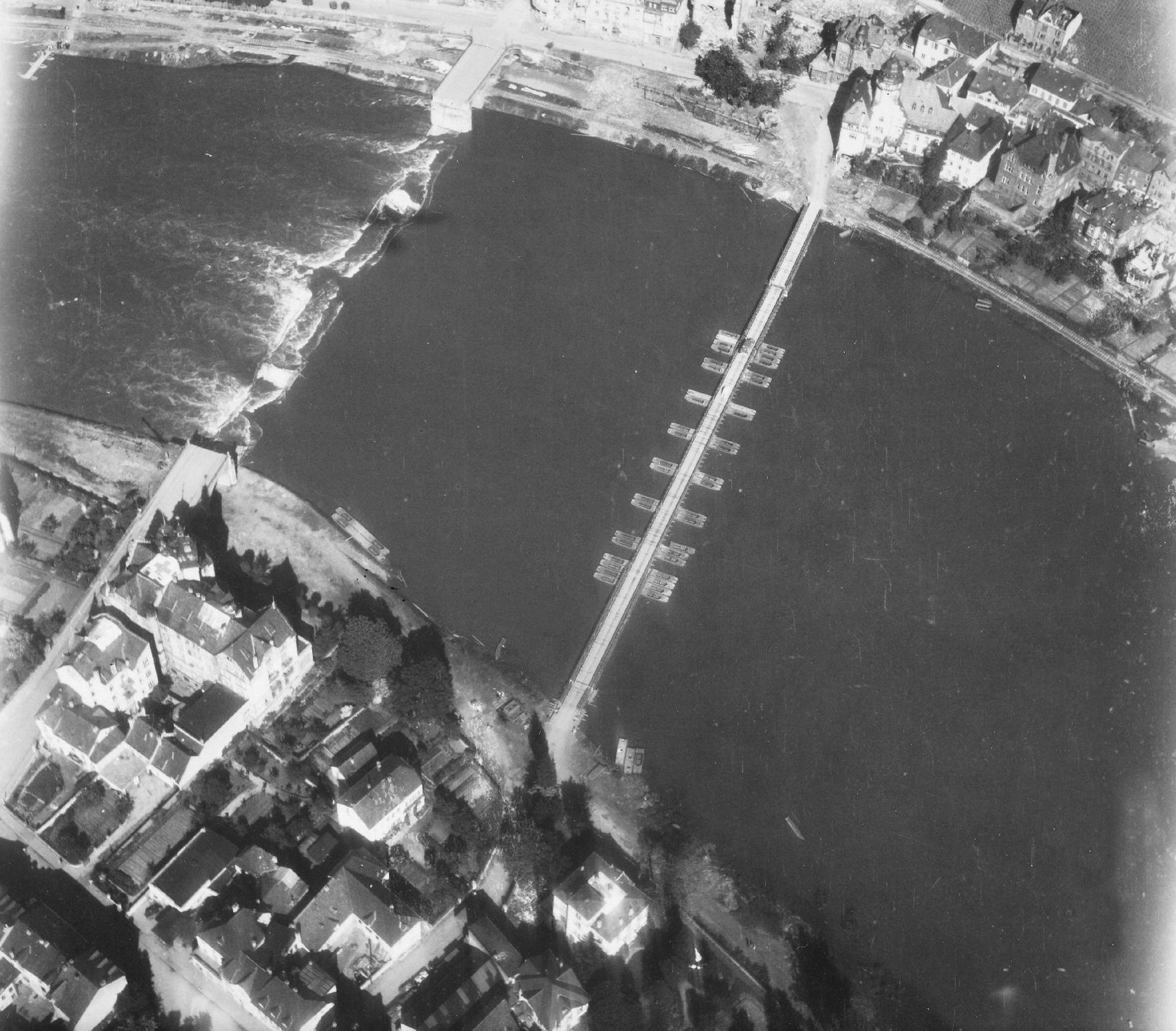 Luftbild 1945: Aus einer "Bestandsaufnahme"-Rundreise der Amerikaner im Nachkriegsdeutschland. Außer der zerstörten Brücke sind kaum Kriegsschäden
