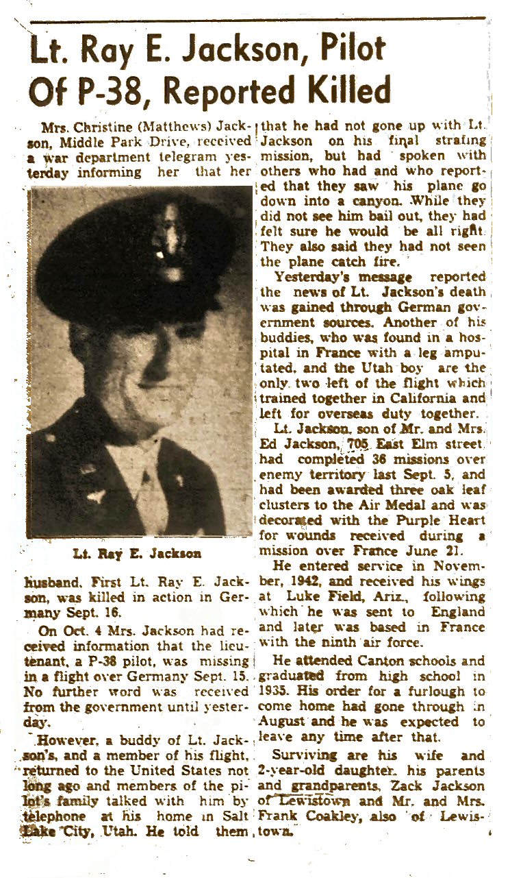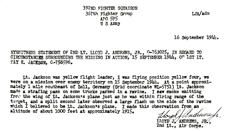 Der Pilot war Leutnant Ray Edward Jackson, geboren am 5.11.1917 aus Vermont, Fulton, Illinois, USA