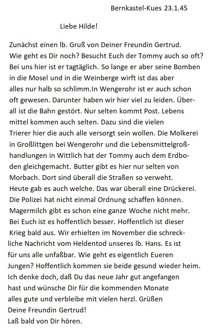 Freundin ihrer Mutter, der 18-jährigen Gertrud Thomé. Er beschreibt die aktuelle Situation in Bernkastel damals.