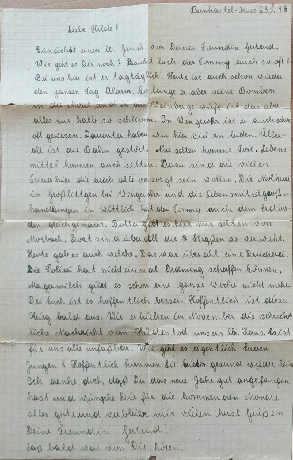 Der Brief von Gertrud Thomé vom 23.1.1945.