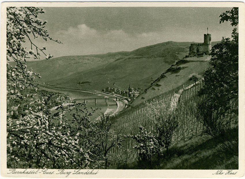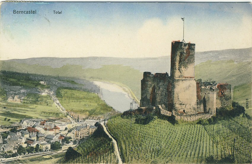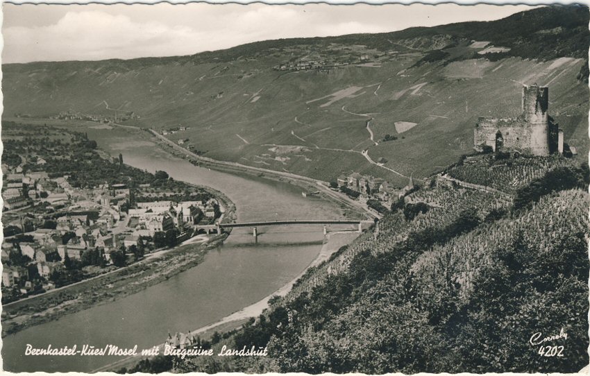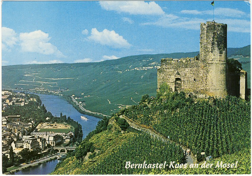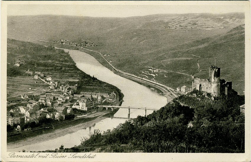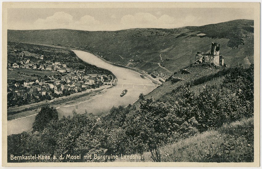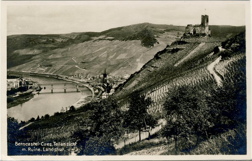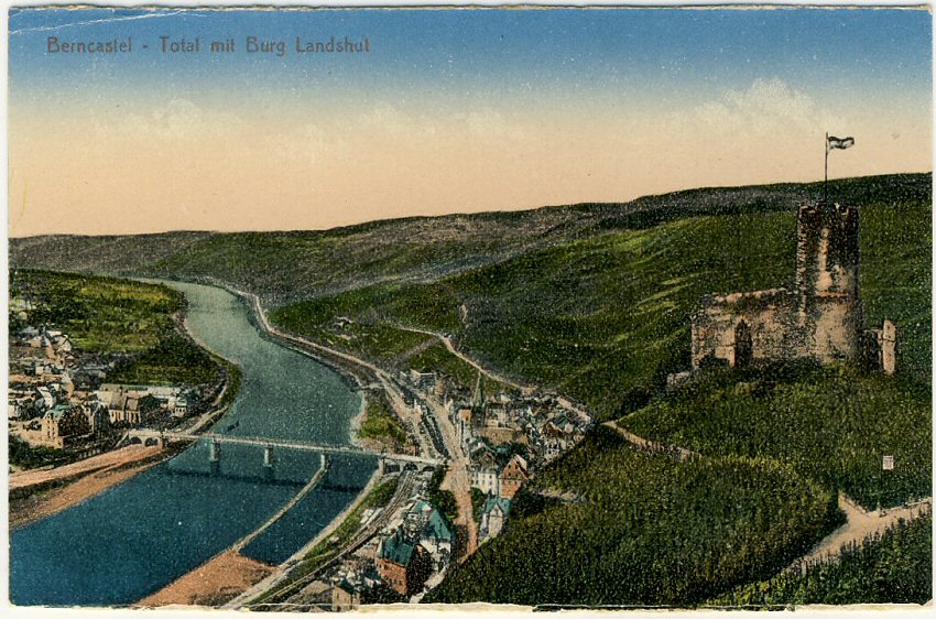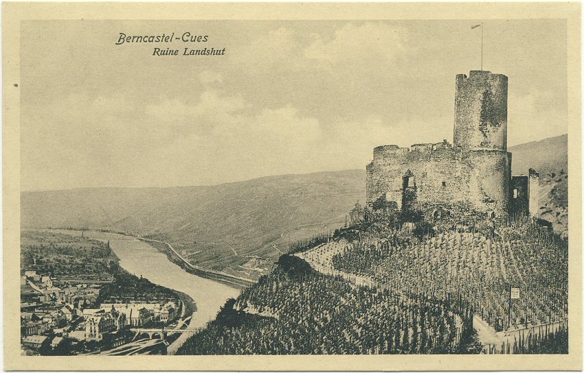 "Bernkastel mit Ruine Landshut" rückseitig "An der Mosel"