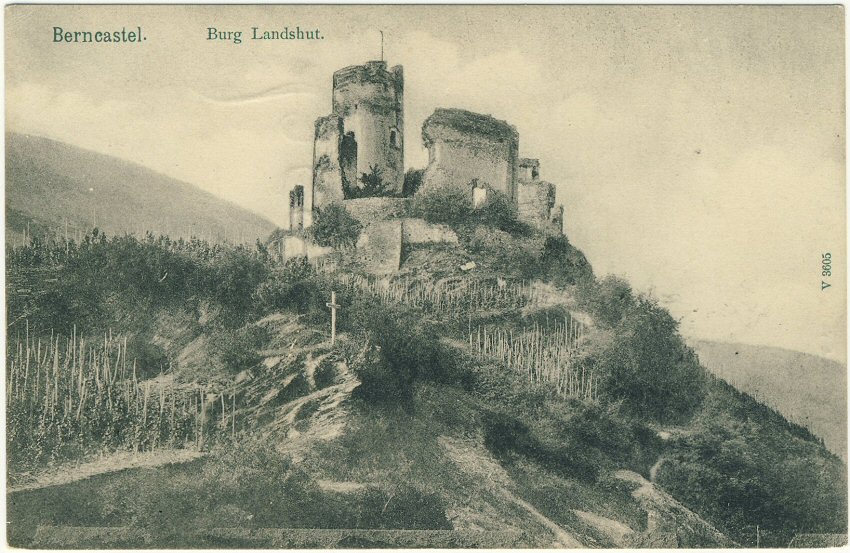 "Berncastel. Burg Landshut" - Diese Karte ist mit dem Leyendecker Foto links erstellt.
