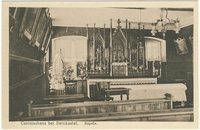 "Canisiushaus bei Bernkastel - Kapelle" Ehemaliges Schloßhotel, später als Exerzitienhaus genutzt. Auf der Rückseite