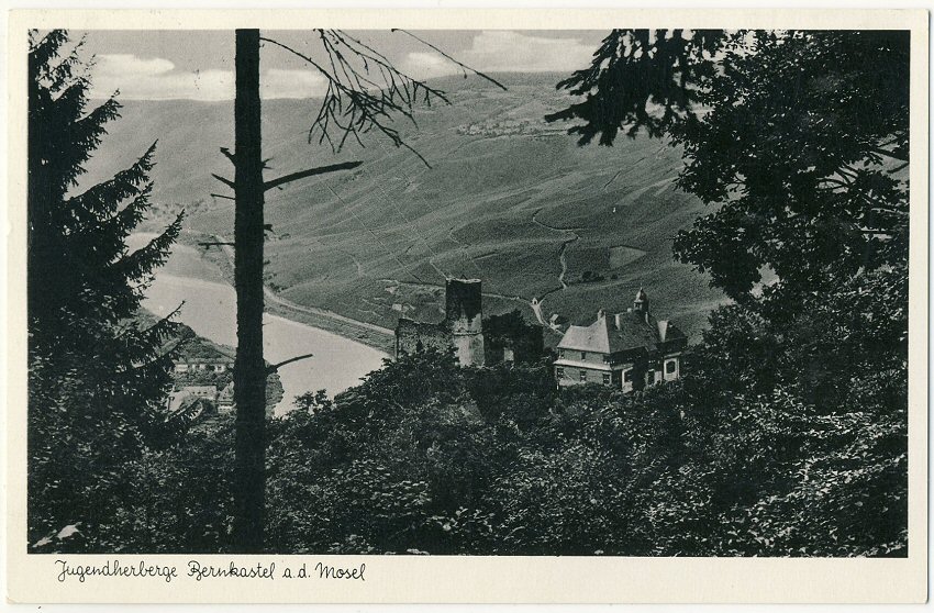 "Jugendherberge Bernkastel / Mosel" - fast identisch mit der Karte oben vom 6.6.54. Durch optische Tricks wirkt die Jugendherberge größer.