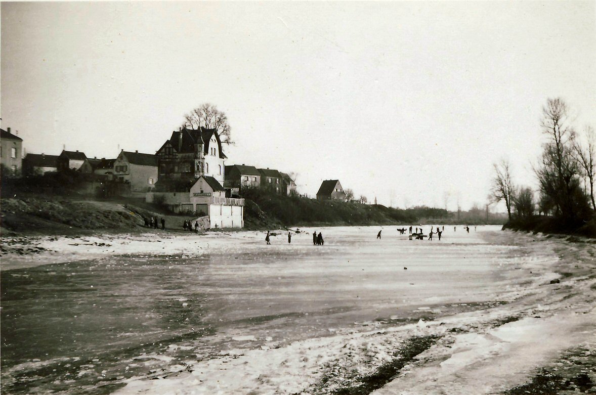 In früheren Zeiten gab es durchaus häfiger Eisgang auf dem Rhein und zugefrorene Seitengewässer wir Hafen & Diescholls.