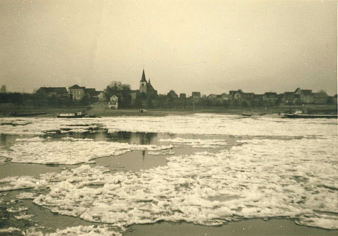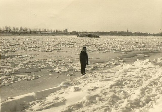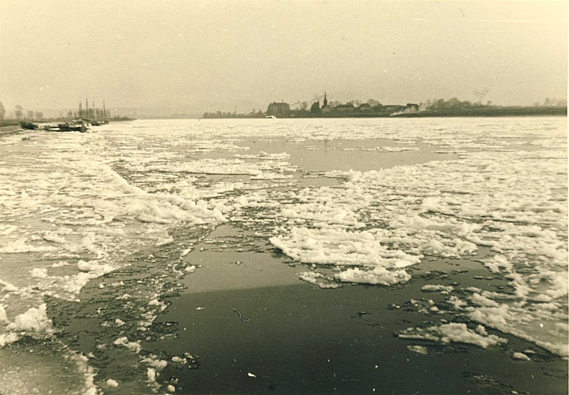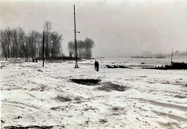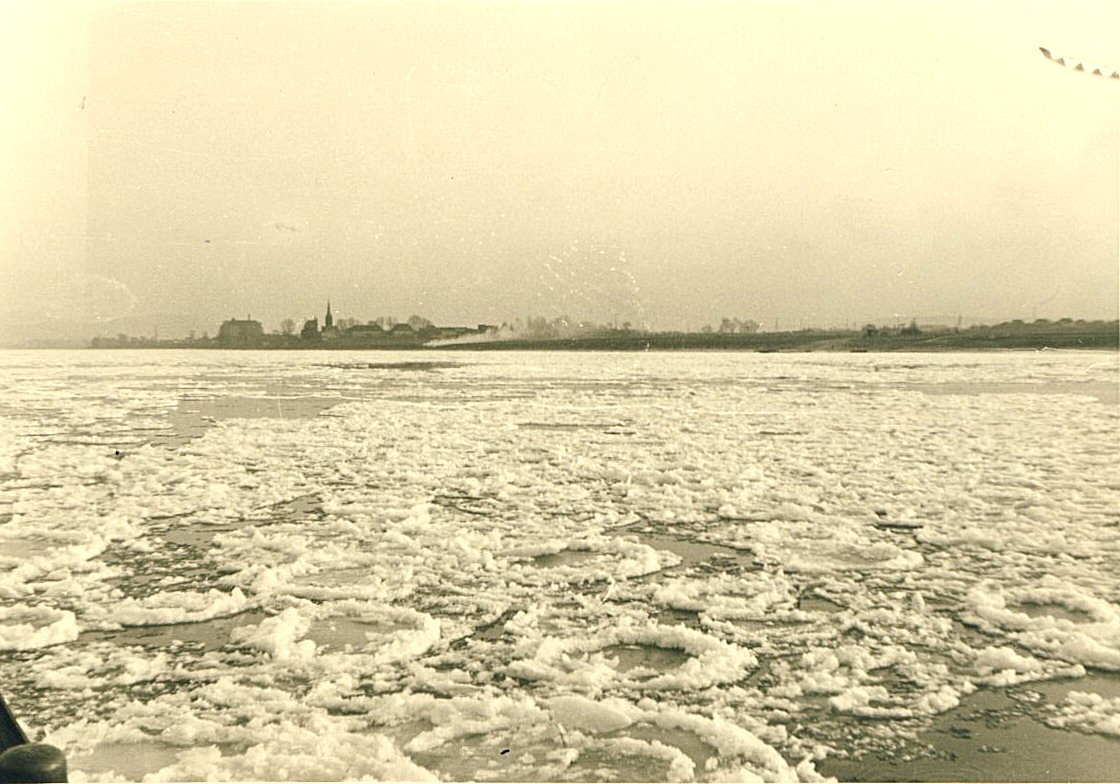 Einige Fotos zum Thema Eisgang auf dem Rhein eventuell Winter 1962/63 aus dem Archiv Korten