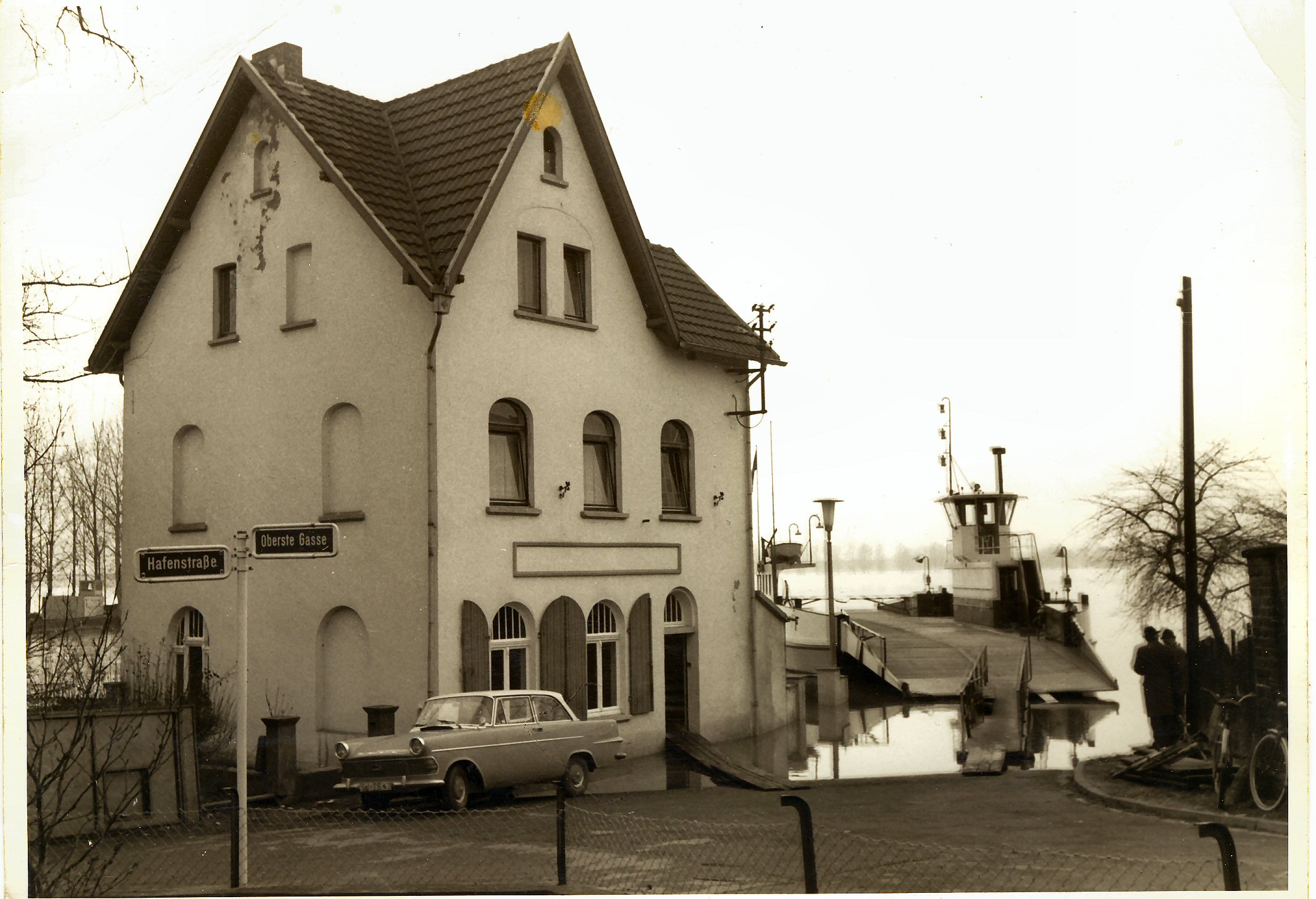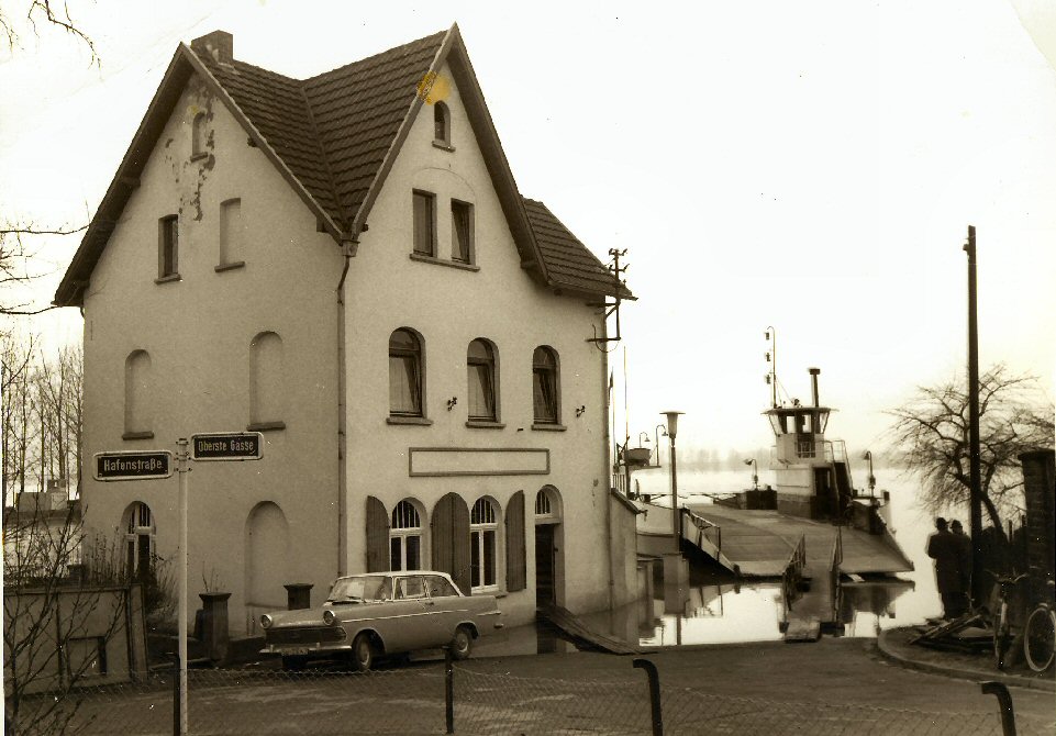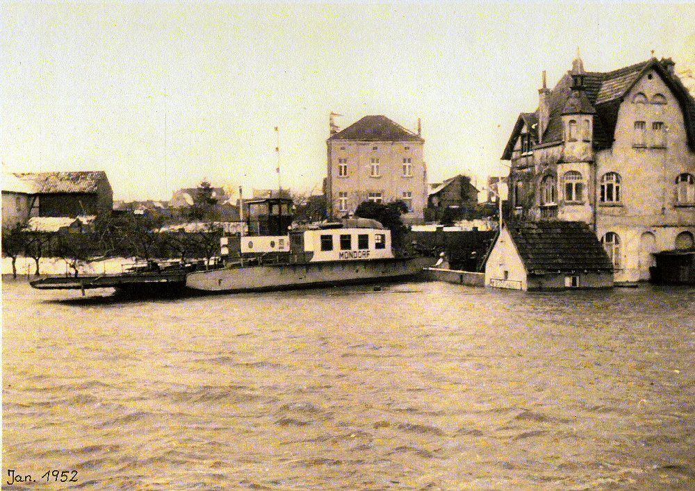 Die Fähre am Schlößchen bei Hochwasser im Januar 1952.