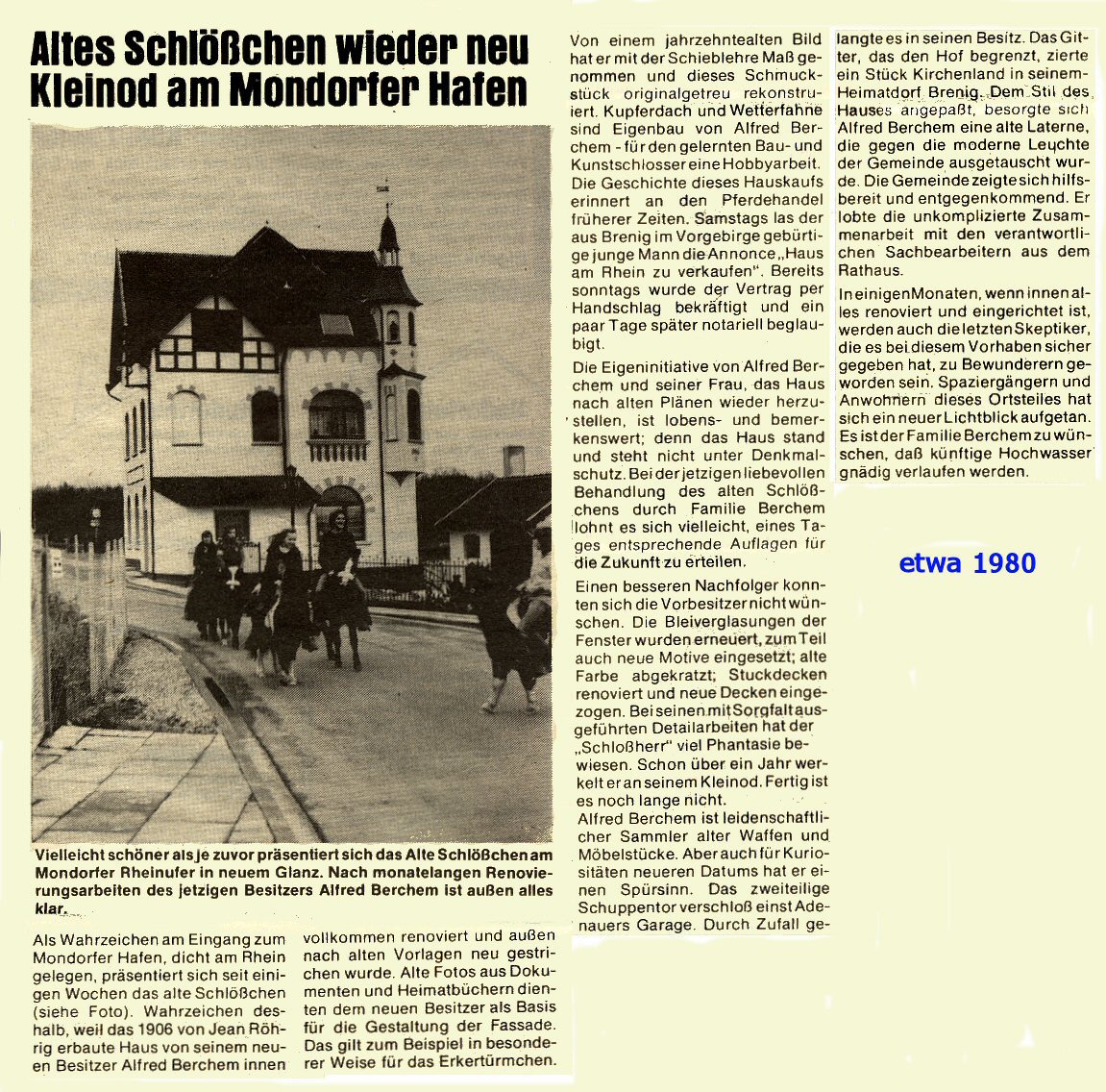 Bericht aus 1980 etwa über den neuen Besitzer Berchem (der mit den Steinfiguren).