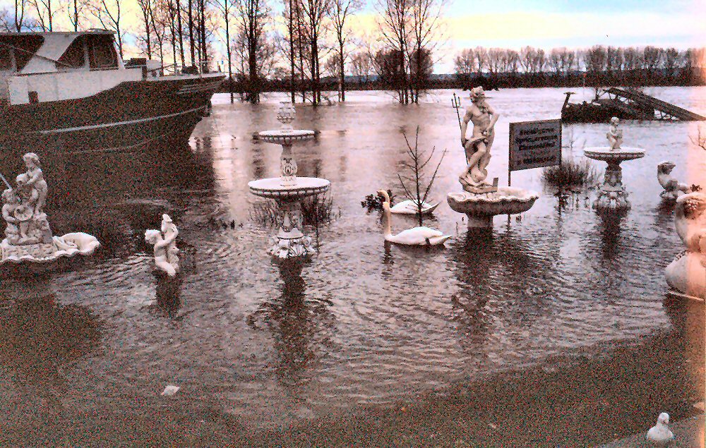 Ende Januar 1995: nasse Füße für das Schlösschen.