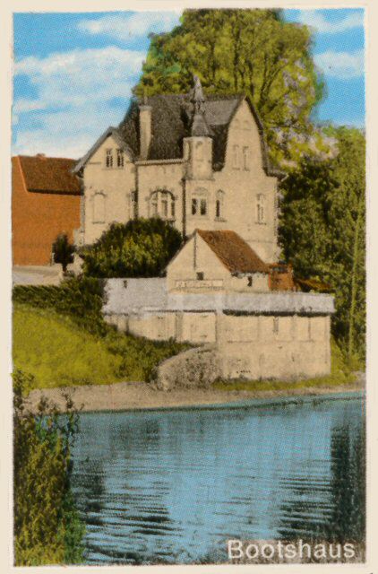 Aus einer der Mehrbildkarten: Das Schlösschen wurde damals auch Bootshaus genannt, weil in dem