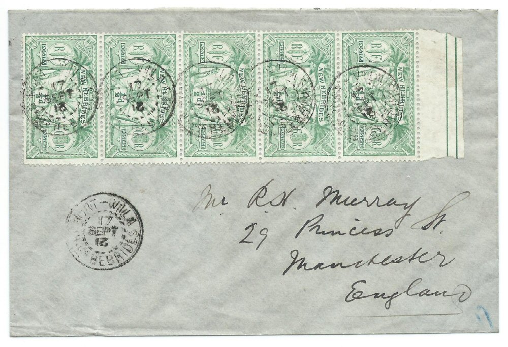 Letter from Port-Vila to Manchester England .