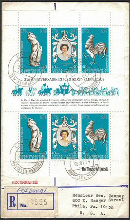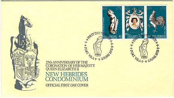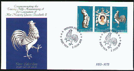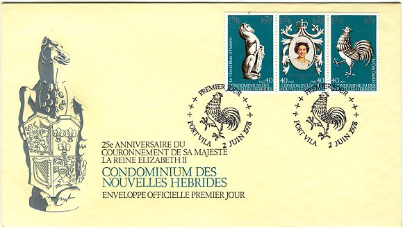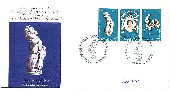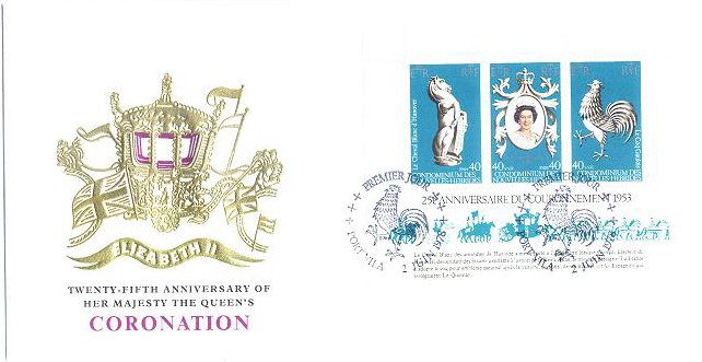 Port-Vila FDC of the French 25th Aniversary of Coronation issue.