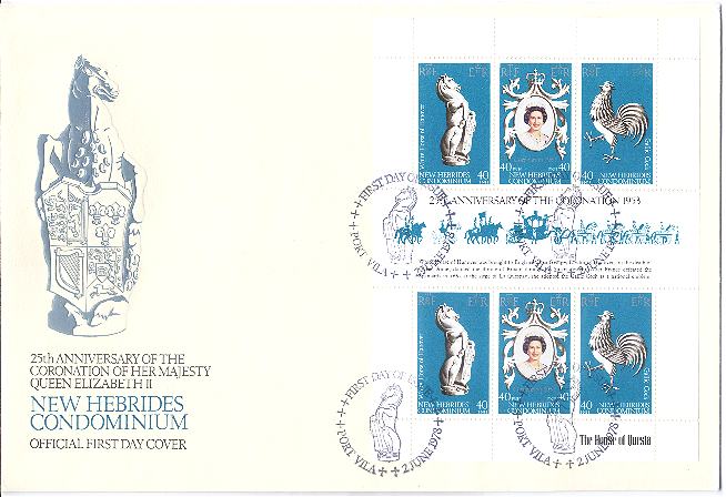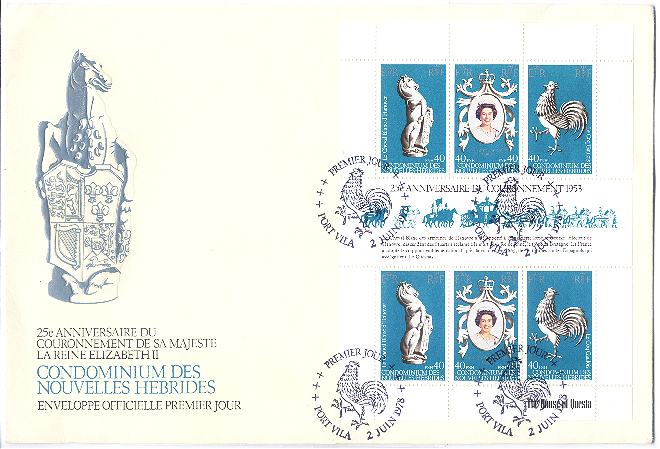 Port-Vila FDC of the French Coronation sheetlet issue.