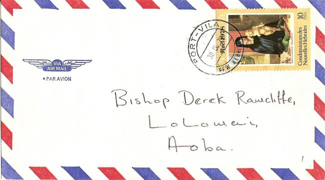 Rawcliffe letter - Port Vila to Lolowai, local 10 FNH rate. (Lebourcq coll.)
