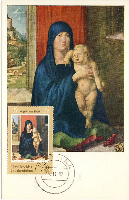 with the Vanuatu Port-Vila cancel Nouvelles Hebrides deleted. The card has not been in postal service. (Klinger coll.)