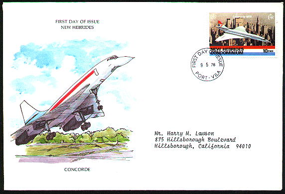 Port-Vila FDC of the 10FNH Concorde stamp.
