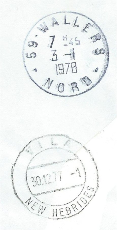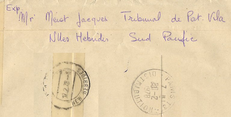 Backstamped Port-Vila 28.1.78--1 and PARIS DISTRIBUTION 2-2 1978 on arrival. ("SeSi"coll.)