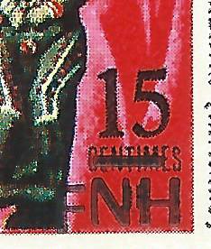 There is the rare variety 15 FNH with the F lower than NH (stamp in the centre of the strip of 3 at left) .