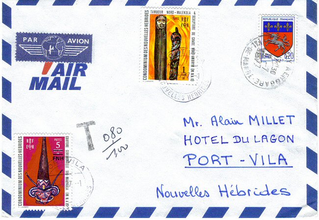 Underpaid letter from France to our site member Monsieur Alain Millet at this time in Vila.